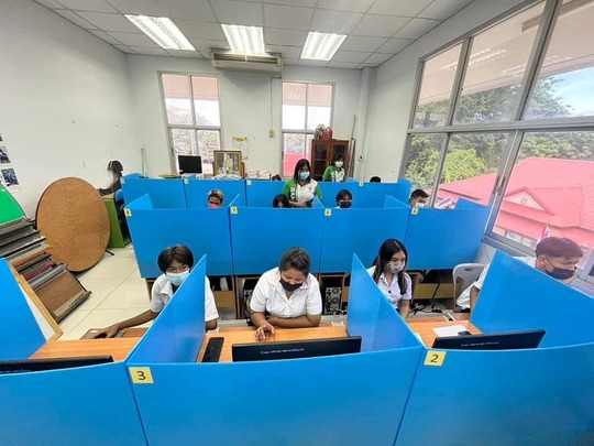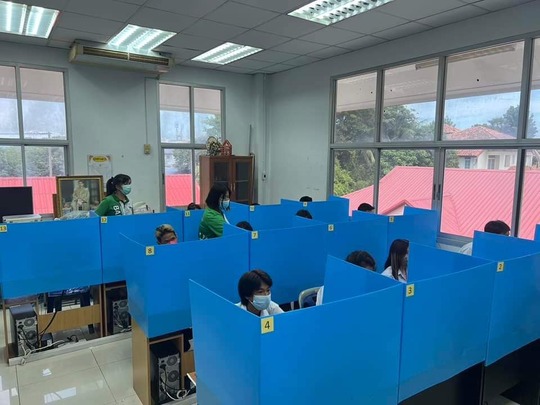 ณ ศูนย์สอบระบบทดสอบด้วยระบบอิเล็กทรอนิกส์ สำนักงาน กศน. ศูนย์สอบ กศน.เขตบางบอน จังหวัดกรุงเทพมหานคร และได้ดำเนินการตามแนวปฏิบัติการควบคุมและป้องกันการแพร่ระบาดของโรคติดเชื้อไวรัสโคโรนา 2019 (COVID-19) อย่าง เคร่งครัด