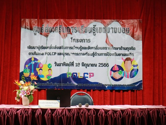 วันที่ 18 มิย. 2566 นางสาวบุสรา นิลเต๊ะ และคณะครูจัดโครงการพัฒนาผู้เรียนเพื่อส่งเสริมการเรียนรู้และขับเคลื่อนสถานศึกษาต้านทุจริตตามโมเดล POLCP ณ วิทยาลัยฐานเทคโนโลยี และบูรณาการการเรียนรู้ด้านการป้องกันยาเสพติด โดยมีพระอธิการชัยรัตน์ ธีรปุญโญ เจ้าอาวาสวัดนินสุขาราม ประธานกรรมการสถานศึกษา เป็นประธานพร้อมทั้งบรรยายพิเศษ