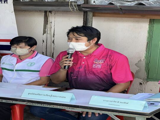 27 มิถุนายน 2566 นางสาวบุสรา นิลเต๊ะ ผู้อำนวยการ กศน.เขตบางบอน ปฏิบัติหน้าที่ผู้อำนวยการศูนย์ส่งเสริมการเรียนรู้เขตบางบอน มอบหมายคณะครูเข้าร่วมกิจกรรมเปิดเวทีประชาคมขับเคลื่อนการบำบัดฟื้นฟูผู้ใช้ยาเสพติด ณ ชุมชนวัดบางบอน
