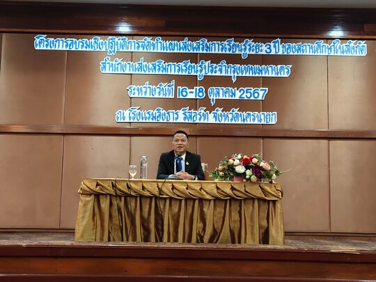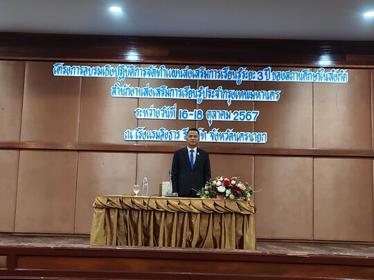 วันที่ 16-18 ตุลาคม 2567 นางสาวบุสรา นิลเต๊ะ ผู้อำนวยการ สกร.ระดับเขตบางบอน และคณะครูข้าร่วมโครงการอบรมเชิงปฎิบัติการจัดทำแผนส่งเสริมการเรียนรู้ระยะ 3 ปี ของสถานศึกษาในสังกัด ณ โรงแรมอิงธาร รีสอร์ท