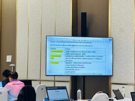 วันที่ 18-20 ธันวาคม 2567 นางสาวบุสรา นิลเต๊ะ ผอ.สกร.ระดับเขตบางบอน นางสาวรัชนี ปาละโค ครูอาสาสมัคร และนายวิทยา เจือจันทร์ ครู กศน.ตำบล เข้าร่วมโครงการอบรมเชิงปฏิบัติการ “การประยุกต์ใช้งาน AI