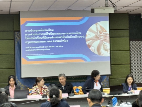 วันที่ 8 มกราคม 2568 นางสาวบุสรา นิลเต๊ะ ผู้อำนวยการ สกร.ระดับเขตบางบอน นางสาวรุ่งนภา สุขคุณา และนายภูวณัฏฐ์ ไชยปัญญาวิชญ์ ครู กศน.ตำบล ร่วมการประชุมเพื่อซักซ้อมการดำเนินการแก้ไขปัญหาสถานะทางทะเบียนให้แก่นักเรียนที่มีเลขประจำตัวขึ้นต้นด้วยอักษร G