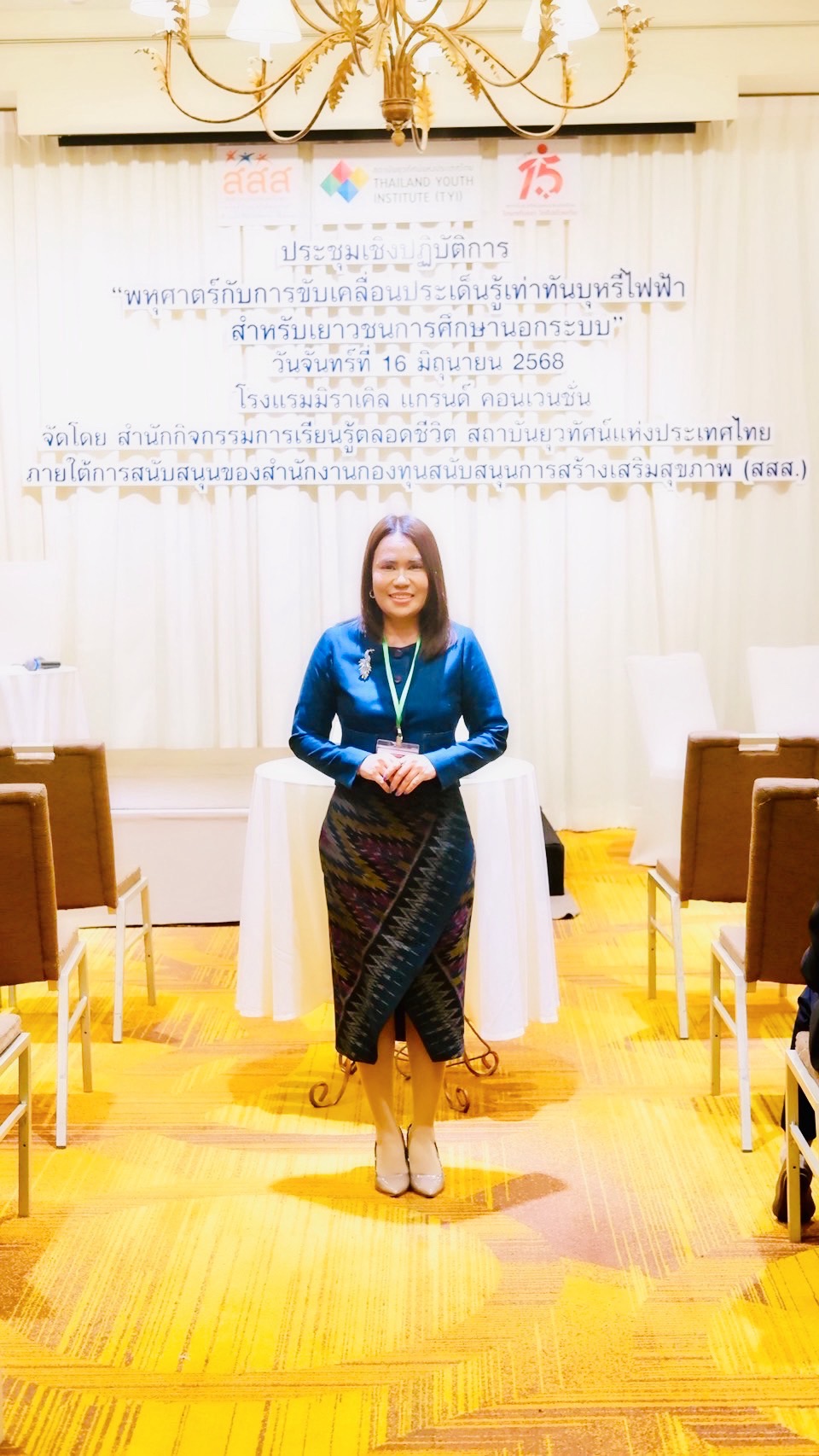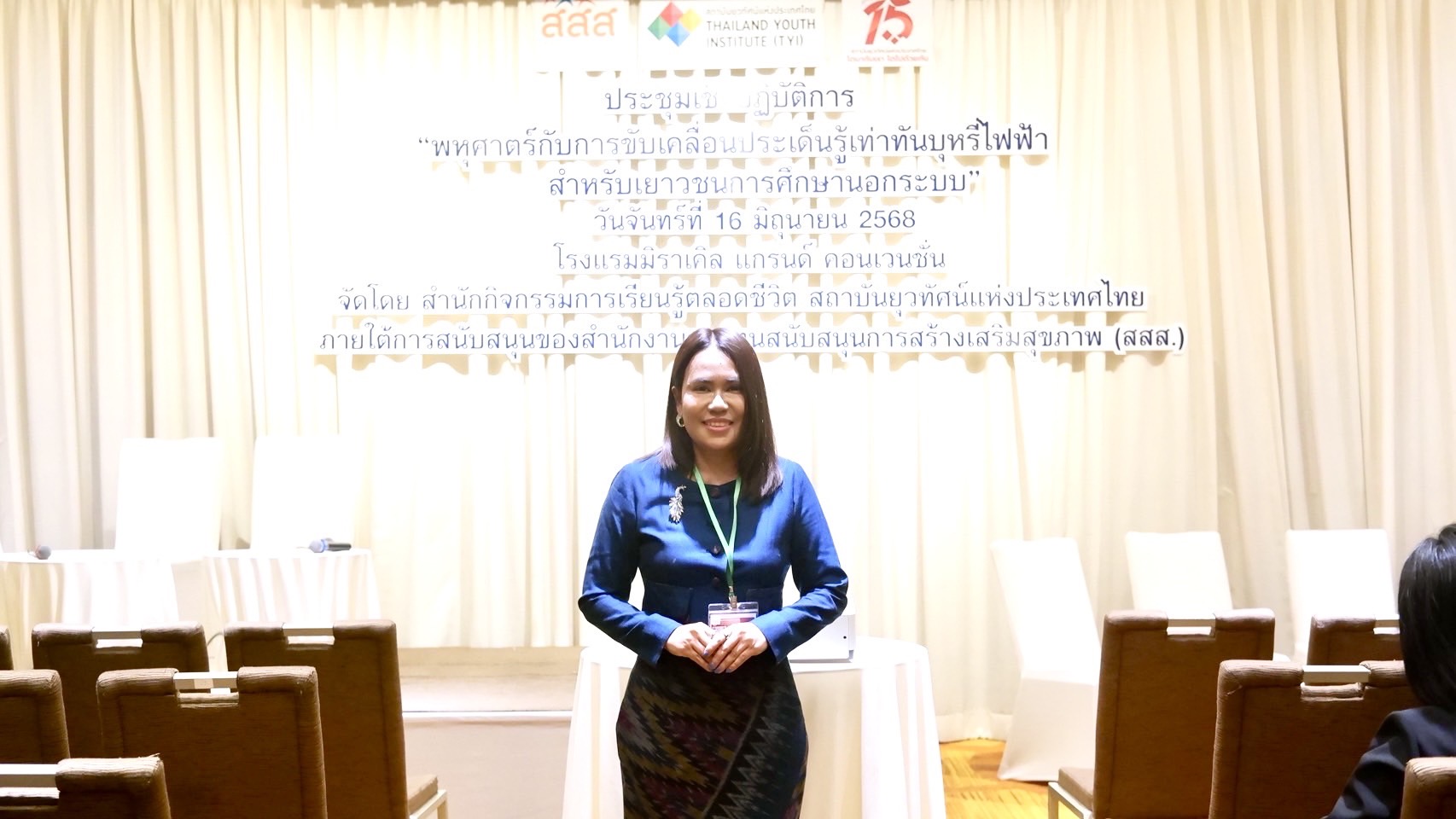 วันที่ 16 มิ.ย. 68 นางสาวบุสรา นิลเต๊ะ ผู้อำนวยการสกร.ระดับเขตบางบอน เข้าร่วมการประชุมปฏิบัติการ “พหุศาสตร์กับการขับเคลื่อนประเด็นรู้เท่าทันบุหรี่ไฟฟ้า สำหรับเยาวชนการศึกษานอกระบบ” ณ โรงแรมมิราเคิลแกรนด์ คอนเวนชั่น ห้องเวอร์โก้ ชั้น 3 เขตหลักสี่ กรุงเทพมหานคร