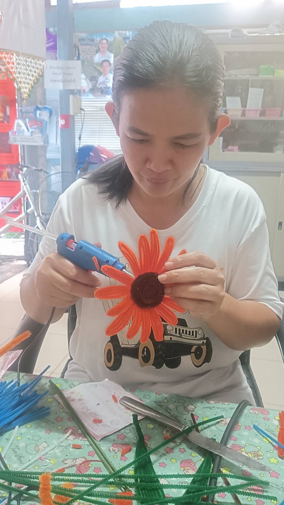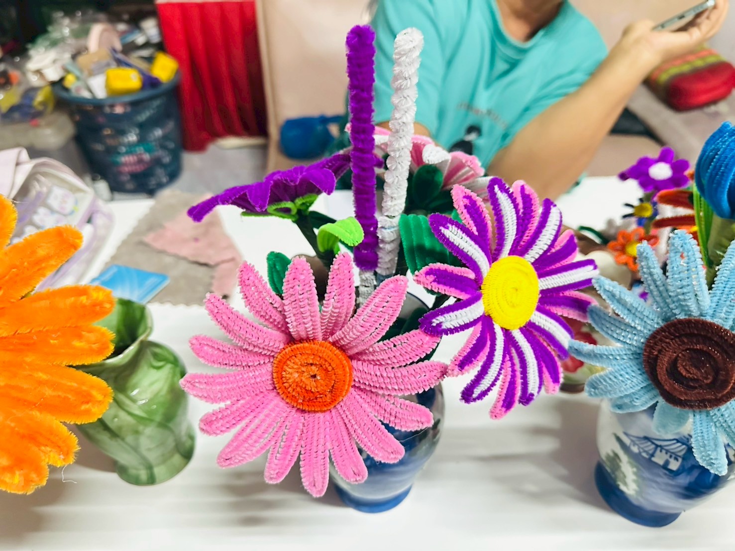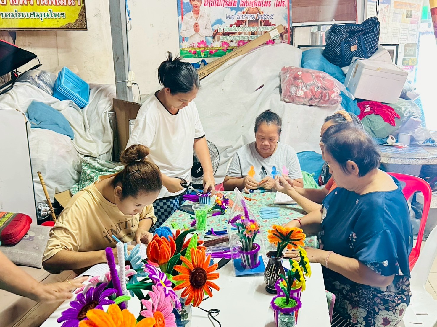 ระหว่างวันที่ 13-15 กรกฎาคม 2568 นางสาวบุสรา นิลเต๊ะ ผู้อำนวยการ ศูนย์ส่งเสริมการเรียนรู้ระดับเขตบางบอน มอบหมายว่าที่ร.ต.หญิงเขมจิรา สวัสดี หัวหน้าแขวงคลองบางพราน ดำเนินโครงการศูนย์ฝึกอาชีพชุมชน (กลุ่มสนใจ)จำนวน 15 ชั่วโมง หลักสูตร “การทำดอกไม้ประดิษฐ์จากลวดกำมะหยี่” โดยมีนางกัญจน์ภัท เส็งดอนไพร เป็นวิทยากร ณ ชุมชนคลองบางพรานพัฒนา แขวงคลองบางพราน เขตบางบอน กรุงเทพมหานคร