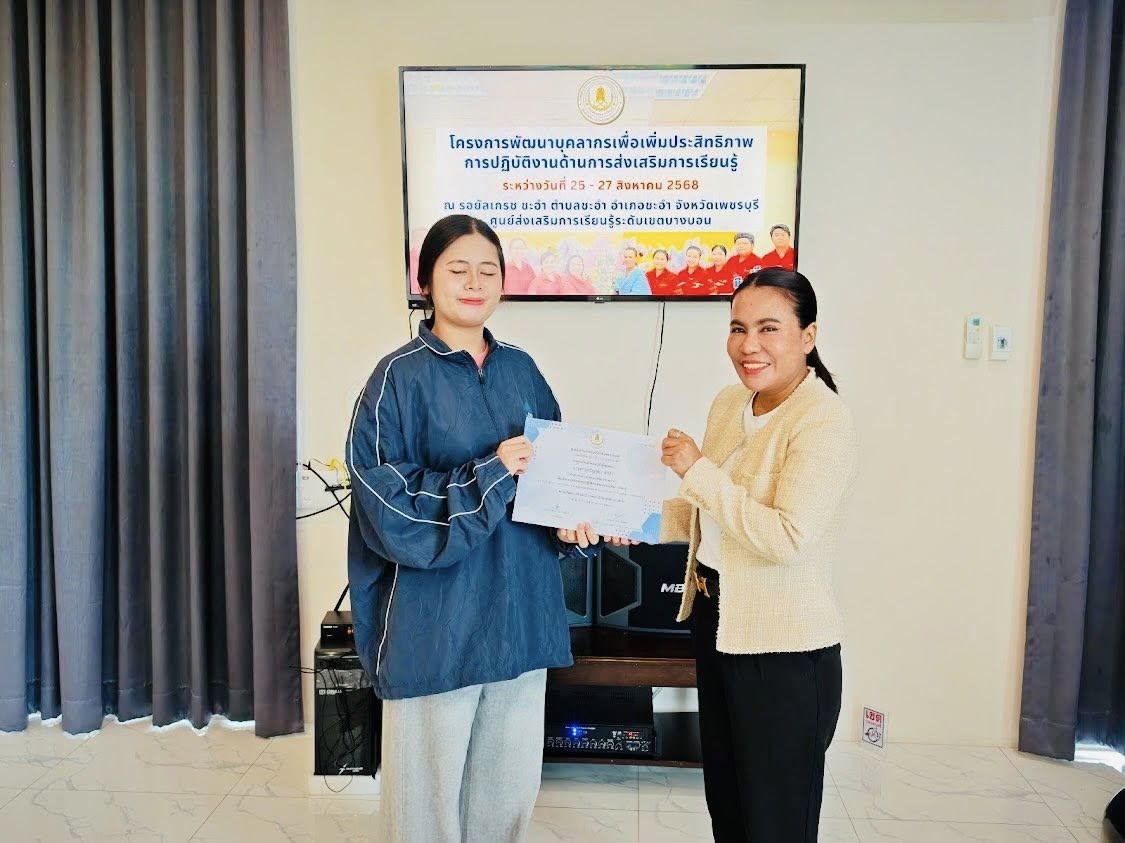 วันที่ 27 สิงหาคม 2568 นางสาวบุสรา นิลเต๊ะ ผู้อำนวยการ ศูนย์ส่งเสริมการเรียนรู้ระดับเขตบางบอน นำข้าร