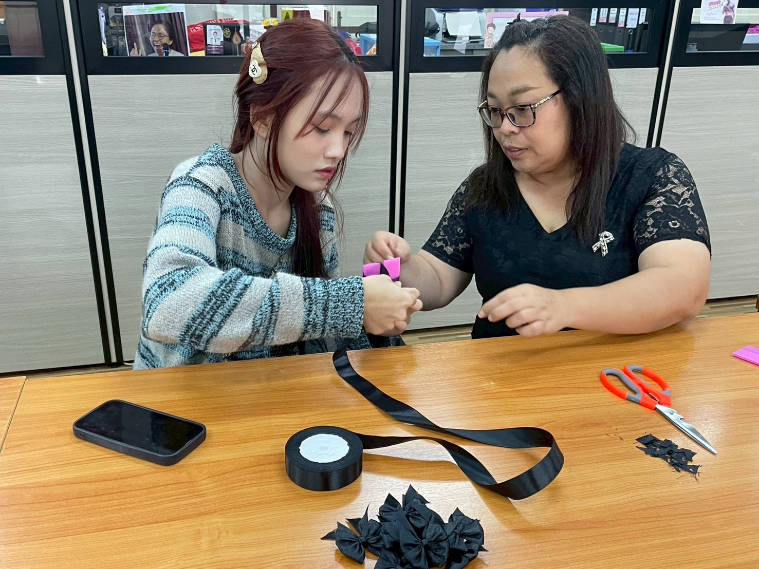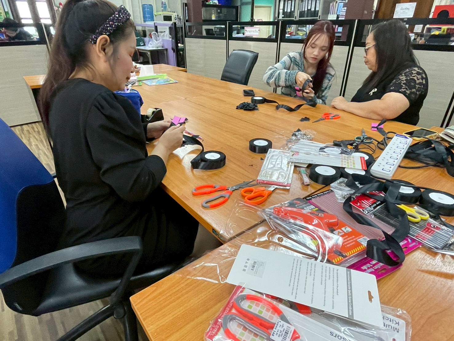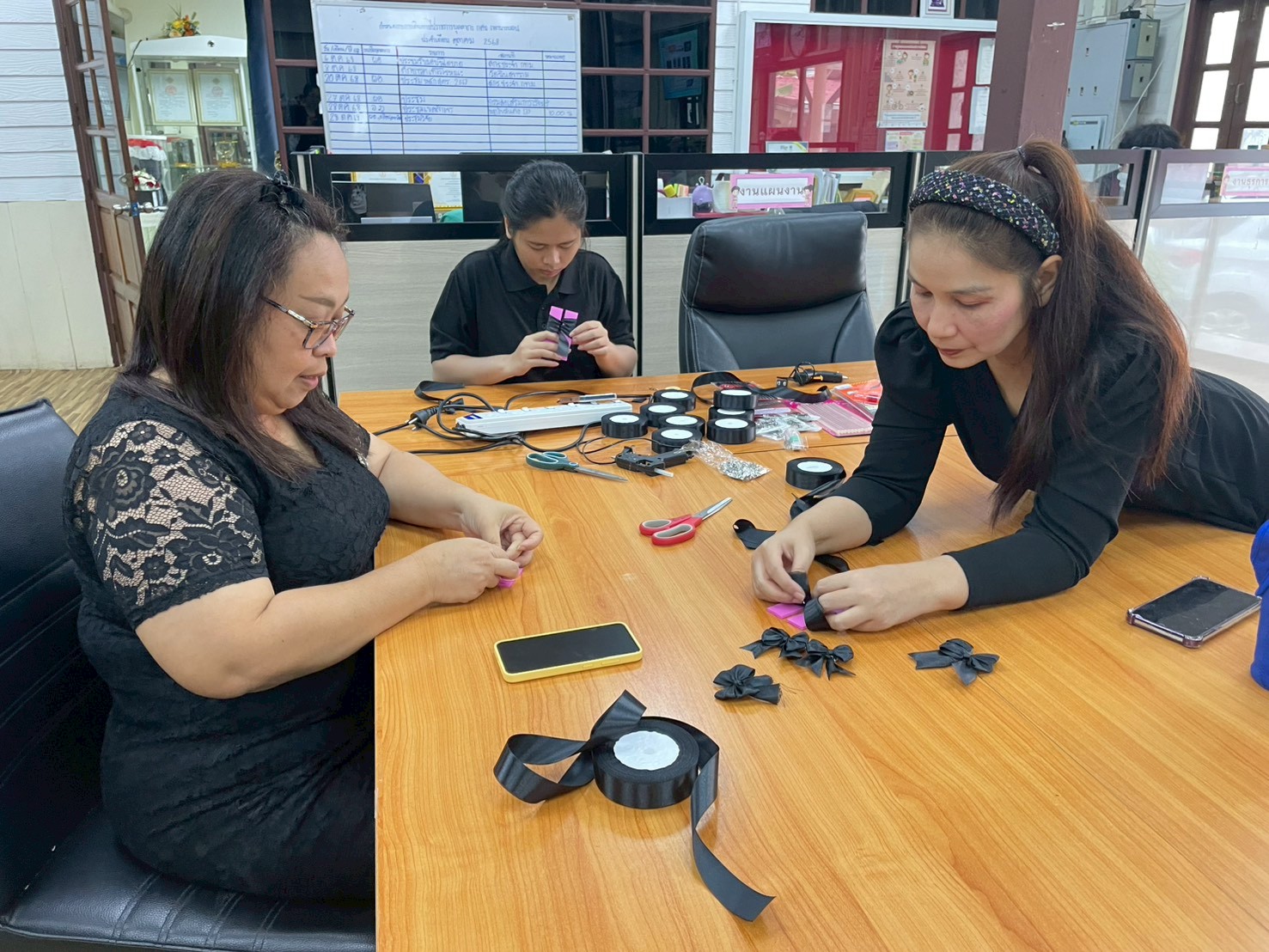 วันที่ 17 พฤศจิกายน 2568 นางสาวบุสรา นิลเต๊ะ ผู้อำนวยการศูนย์ส่งเสริมการเรียนรู้ระดับเขตบางบอน นำคณะบุคลากร ดำเนินการจัดกิจกรรมการสอนทำริบบิ้นโบว์สีดำเครื่องหมายแสดงความอาลัยให้กับนักศึกษา ประชาชน อีกทั้งเพื่อนำไปแจกให้ประชาชนในพื้นที่เขตบางบอน และประชาชนทั่วไป น้อมถวายความอาลัย รำลึกในพระมหากรุณาธิคุณ สมเด็จพระนางเจ้าสิริกิติ์ พระบรมราชินีนาถ พระบรมราชชนนีพันปีหลวง อย่างหาที่สุดมิได้