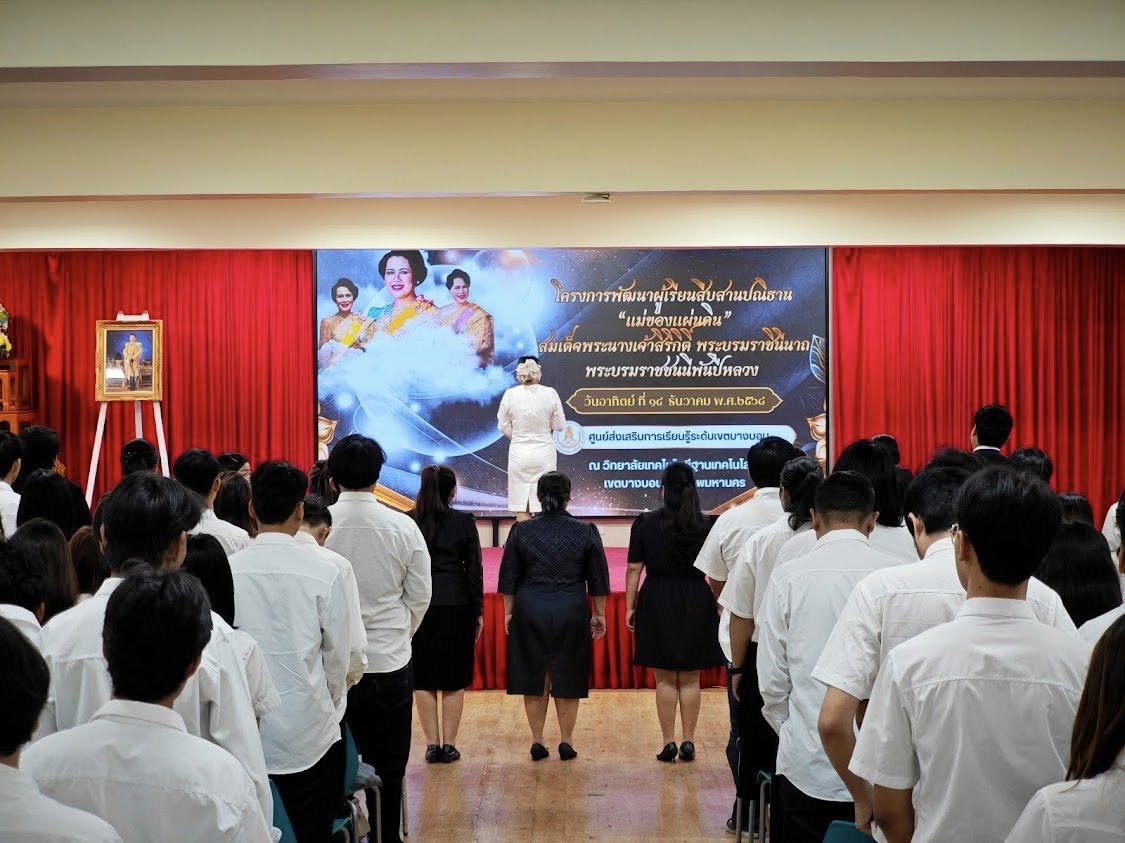 วันที่ 14 ธันวาคม 2568 นางสาวบุสรา นิลเต๊ะ ผู้อำนวยการ สกร.ระดับเขตบางบอน เป็นประธานในพิธีเปิดโครงการพัฒนาผู้เรียนสืบสานปณิธาน "แม่ของแผ่นดิน" สมเด็จพระนางเจ้าสิริกิติ์ พระบรมราชินีนาถพระบรมราชชนนีพันปีหลวง ที่ได้มอบหมายนางสาวรุ่งนภา สุขคุณา ครูศูนย์การเรียนรู้ นำ คณะบุคลากร และนักศึกษาเข้าร่วม โครงการจำนวน 400 คน โดยโครงการมีกิจกรรมถวายความอาลัยแด่ สมเด็จพระนางเจ้าสิริกิติ์ พระบรมราชินีนาถพระบรมราชชนนีพันปีหลวง เพื่อแสดงถึงความสำนึกในพระมหากรุณาธิคุณอันหาที่สุดมิได้ และเรียนรู้พระราชกรณียกิจที่สำคัญ ณ หอประชุมอาคารยานยนต์มหาชัย วิทยาลัยเทคโนโลยีฐานเทคโนโลยี แขวงบางบอนใต้ เขตบางบอน กรุงเทพมหานคร