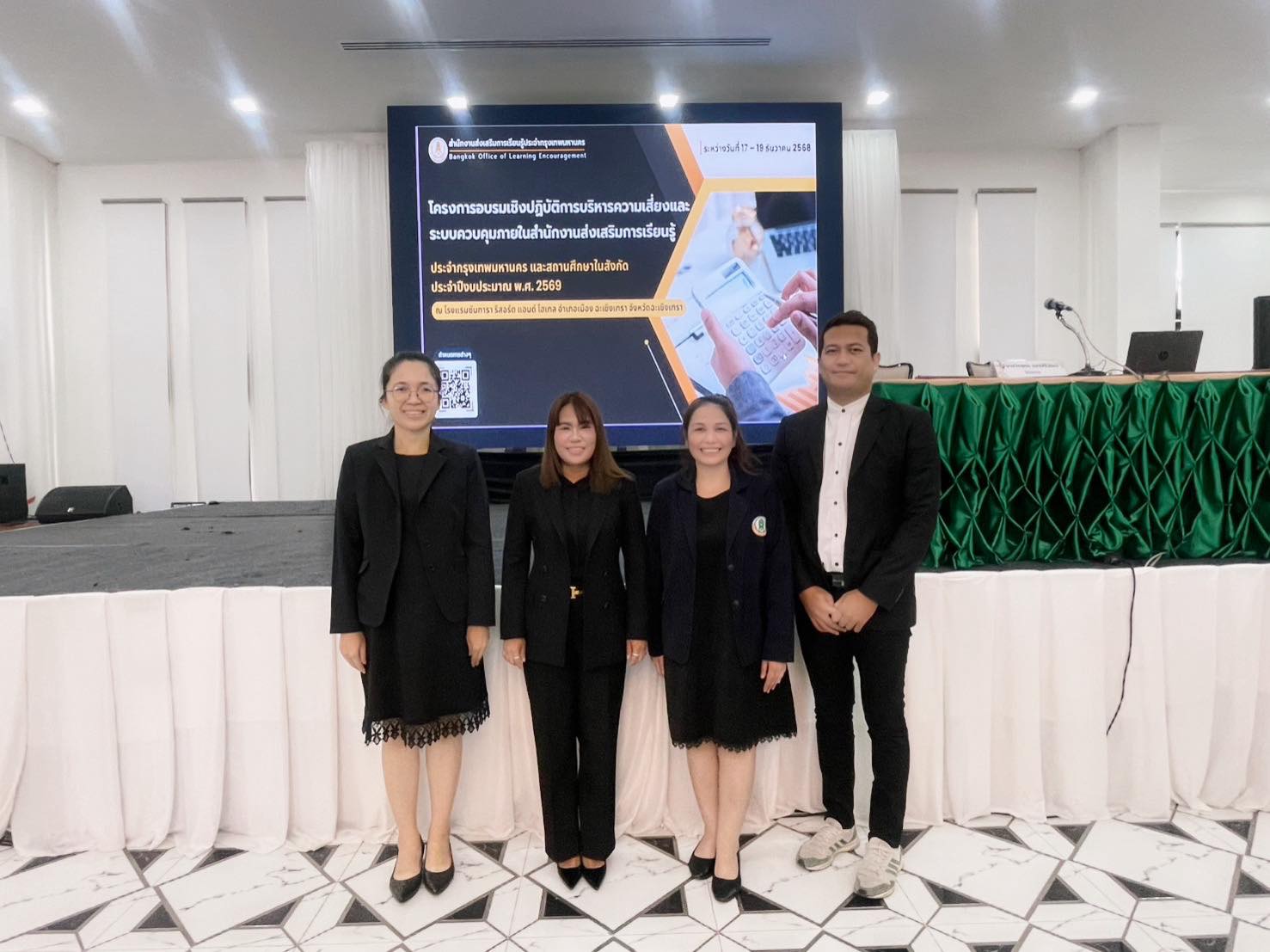 ระหว่างวันที่ 17-19 ธันวาคม 2568 นางสาวบุสรา นิลเต๊ะ ผู้อำนวยการ สกร.ระดับเขตบางบอน นำนางสาวอรอุมา สุวัฒนกุลชัย ครูผู้ช่วย ว่าที่ร.ต.หญิงเขมจิรา สวัสดี ครูศกร. และนายวิทยา เจือจันทร์ ครูศกร. เข้าร่วมโครงการอบรมเชิงปฏิบัติการบริหารความเสี่ยงและระบบควบคุมภายใน สำนักงานส่งเสริมการเรียนรู้ ประจำกรุงเทพมหานคร และสถานศึกษาในสังกัด ประจำปีงบประมาณ พ.ศ. 2569 โดยภายในโครงการมี นางธัชชนก เจริญวงศ์ ผู้อำนวยการสำนักงาน สกร.ประจำกรุงเทพมหานคร เป็นประธานในพิธีเปิด และนายวีรยุทธ์ แสงสิริวัฒน์ เป็นวิทยากรให้ความรู้ ณ โรงแรมซันทารา รีสอร์ต แอนด์ โฮเทล อำเภอเมือง ฉะเชิงเทรา จังหวัดฉะเชิงเทรา