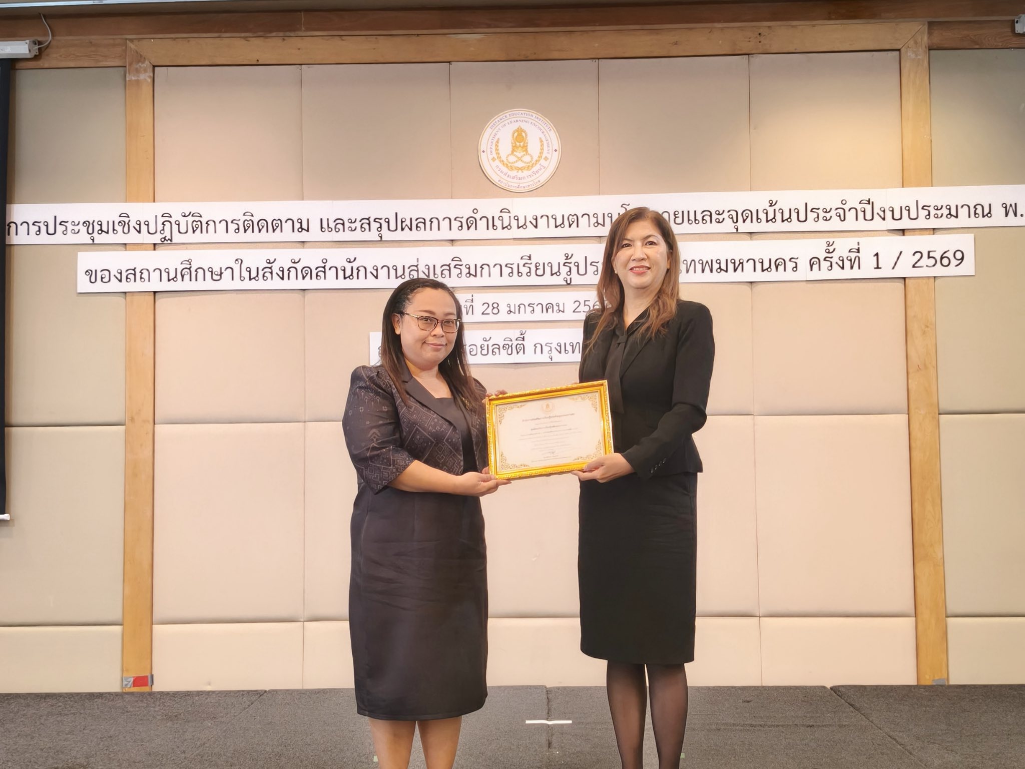 วันที่ 28 มกราคม 2569 นางสาวบุสรา นิลเต๊ะ ผู้อำนวยการ สกร.ระดับเขตบางบอน นำ นางผกามาศ เรืองจิรัษเฐียร ครู และนางสาวอรอุมา สุวัฒนกุลชัย ครูผู้ช่วย เข้าร่วมโครงการประชุมเชิงปฏิบัติการติดตาม และสรุปผลการดำเนินงานตามนโยบายและจุดเน้น ประจำปีงบประมาณ พ.ศ. 2569 ของสถานศึกษาในสังกัด สำนักงานส่งเสริมการเรียนรู้ประจำกรุงเทพมหานคร ครั้งที่ 1 /2569
