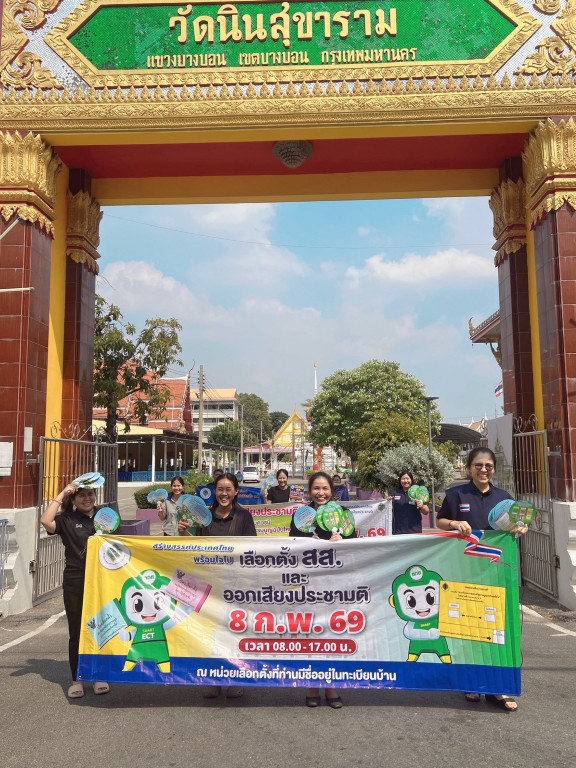 วันที่ 6 กุมภาพันธ์ 2569 นางสาวบุสรา นิลเต๊ะ ผู้อำนวยการ สกร.ระดับเขตบางบอน มอบหมายให้คณะบุคลากรในสังกัด จัดกิจกรรมเดินรณรงค์เชิงรุกภายใต้โครงการ “พลเมืองดีวิถีประชาธิปไตย” เพื่อประชาสัมพันธ์และสร้างการรับรู้แก่ประชาชนเกี่ยวกับการเลือกตั้งสมาชิกสภาผู้แทนราษฎร (สส.) เป็นการทั่วไป และการออกเสียงประชามติ ณ บริเวณพื้นที่โดยรอบ สกร.ระดับเขตบางบอน