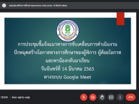 วันจันทร์ที่ 14 มีนาคม 2565 นางสาวบุสรา นิลเต๊ะ ผู้อำนวยการ กศน.เขตบางบอน คณะบุคลากรเข้าร่วมการประชุ