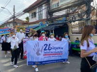 26 มิย 2565 ผอ.บุสรา นิลเต๊ะ พร้อมด้วยคณะครู และนักศึกษา ตลอดจนภาคีเครือข่ายร่วมเดินรณรงค์กิจกรรมต่อ