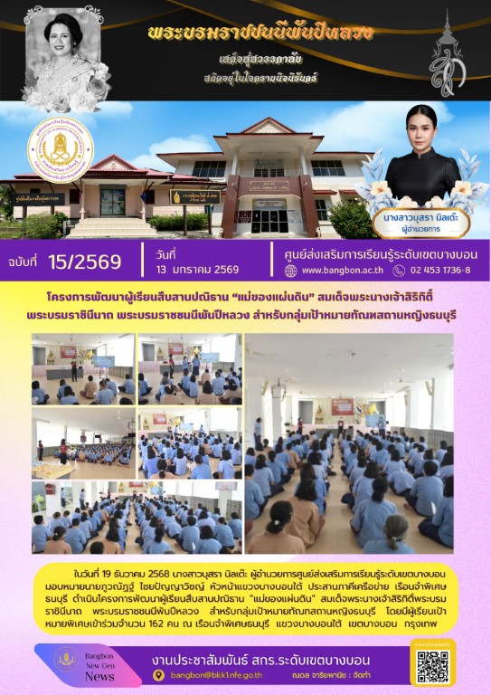 วันที่ 23 กุมภาพันธ์ 2569 นางสาวบุสรา นิลเต๊ะ ผู้อำนวยการ ศูนย์ส่งเสริมการเรียนรู้ระดับเขตบางบอน นำข