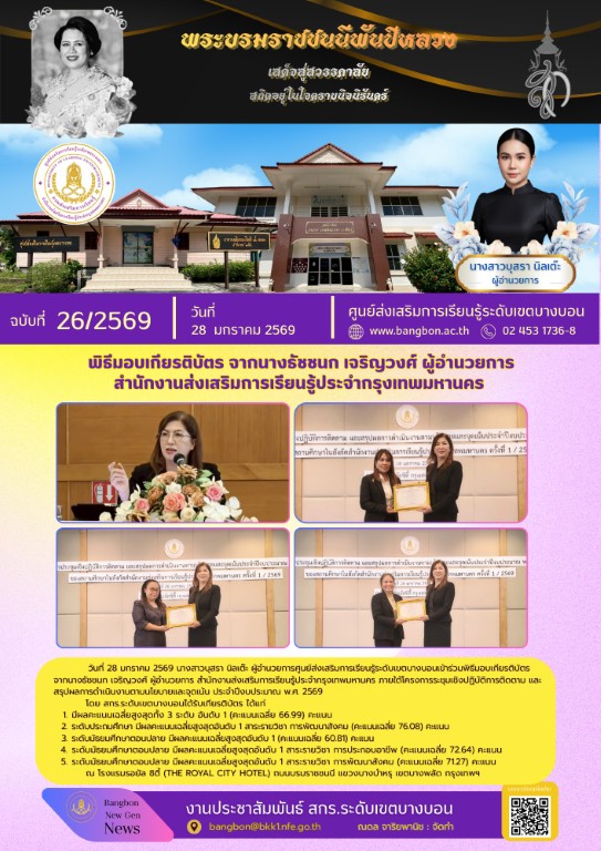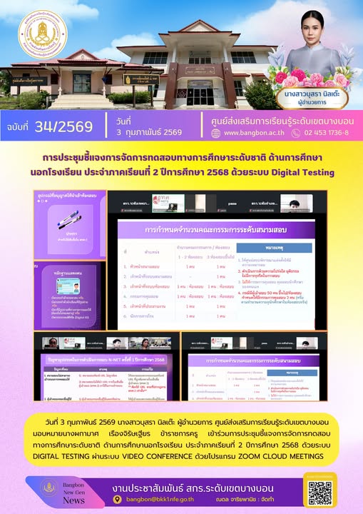 วันที่ 25 กุมภาพันธ์ 2569 นางสาวบุสรา นิลเต๊ะ ผู้อำนวยการ ศูนย์ส่งเสริมการเรียนรู้ระดับเขตบางบอน เข้