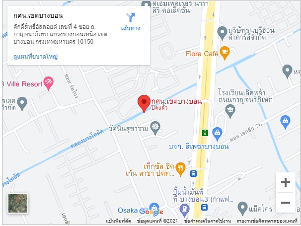 เลขที่ 4 สกร.ระดับเขตบางบอน ซ.วัดนินสุขาราม แขวงบางบอนเหนือ เขตบางบอน กทม. 10150 แขวงบางบอน เขตบางบอน กรุงเทพมหานคร 10150 เบอร์โทรศัพท์ 024531736-8 แบบฟอร์มติดต่อโรงเรียน