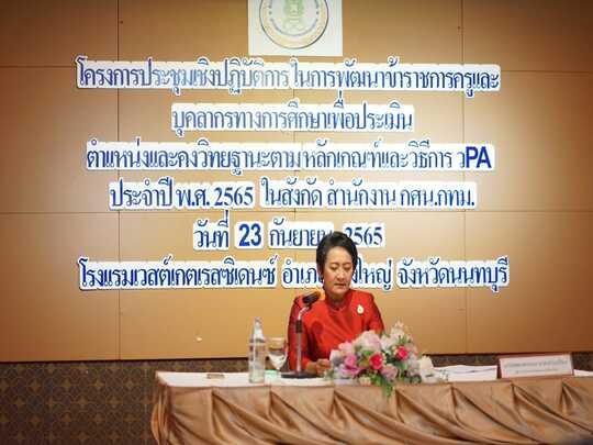ในวันที่ 23 กันยายน 2565 นางสาวบุสรา นิลเต๊ะ ผู้อำนวยการ กศน.เขตบางบอน เข้าร่วมโครงการประชุมเชิงปฏิบัติการในการพัฒนาข้าราชการครูและบุคลากรทางการศึกษาเพื่อประเมินตำแหน่งและคงวิทยฐานะตามหลักเกณฑ์และวิธีการ PA