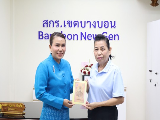 วันที่ 9 สิงหาคม 2567 นางสาวบุสรา นิลเต๊ะ ผู้อำนวยการ สกร.ระดับเขตบางบอน มอบธนบัตรที่ระลึกเฉลิมพระเก