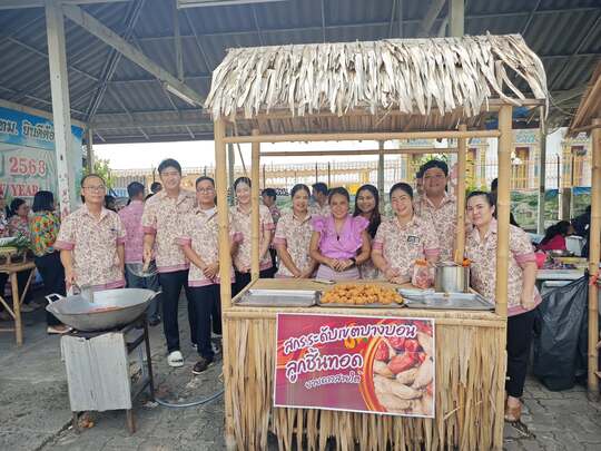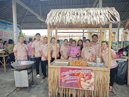 วันที่ 8 เม.ย. 2568 นางสาวบุสรา นิลเต๊ะ ผู้อำนวยการ สกร.ระดับเขตบางบอน นำคณะครูและบุคลากร กิจกรรมสืบสานงานประเพณีสงกรานต์ พ.ศ.2568 สนับสนุนอาหารว่าง “ลูกชิ้นปลาระเปิด และไส้กรอก” ในกิจกรรมในครั้งนี้ ณ สำนักงาน สกร.ประจำกรุงเทพมหานคร