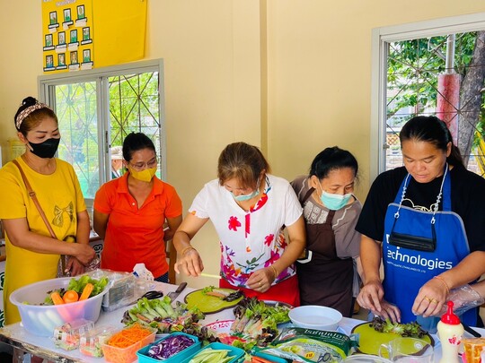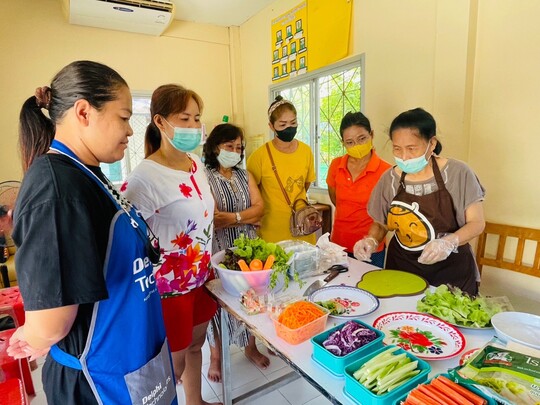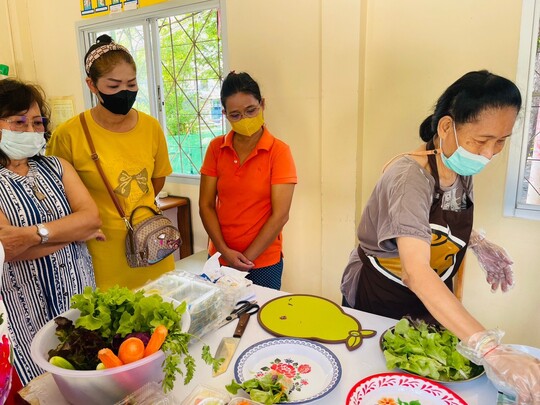 21-22 สค. 2566 นางสาวบุสรา นิลเต๊ะ มอบหมายให้คณะครูจัดกิจกรรมหลักสูตรการทำสลัดโล ณ หมู่บ้านบางบอนวิล