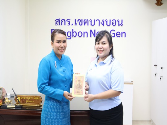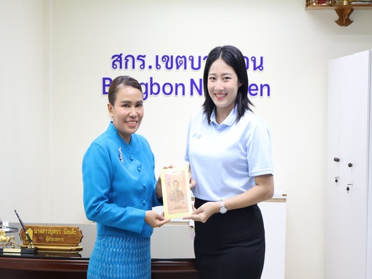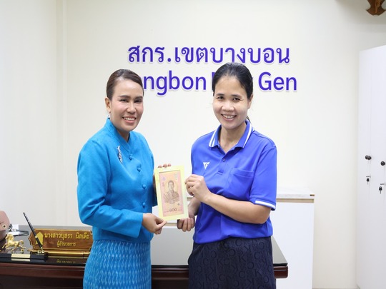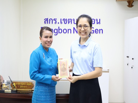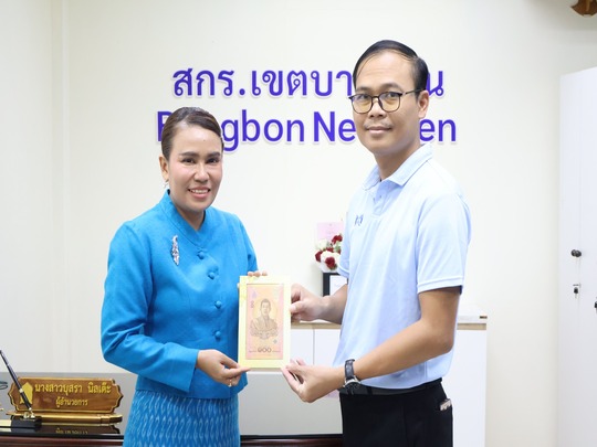 วันที่ 9 สิงหาคม 2567 นางสาวบุสรา นิลเต๊ะ ผู้อำนวยการ สกร.ระดับเขตบางบอน มอบธนบัตรที่ระลึกเฉลิมพระเก