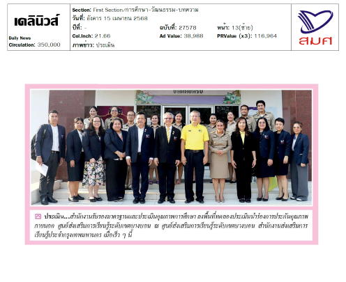 วันที่ 21 มีนาคม 2568 นางสาวบุสรา นิลเต๊ะ ผู้อำนวยการ สกร.ระดับเขตบางบอน พร้อมด้วยครูวิทยา เจือจันทร